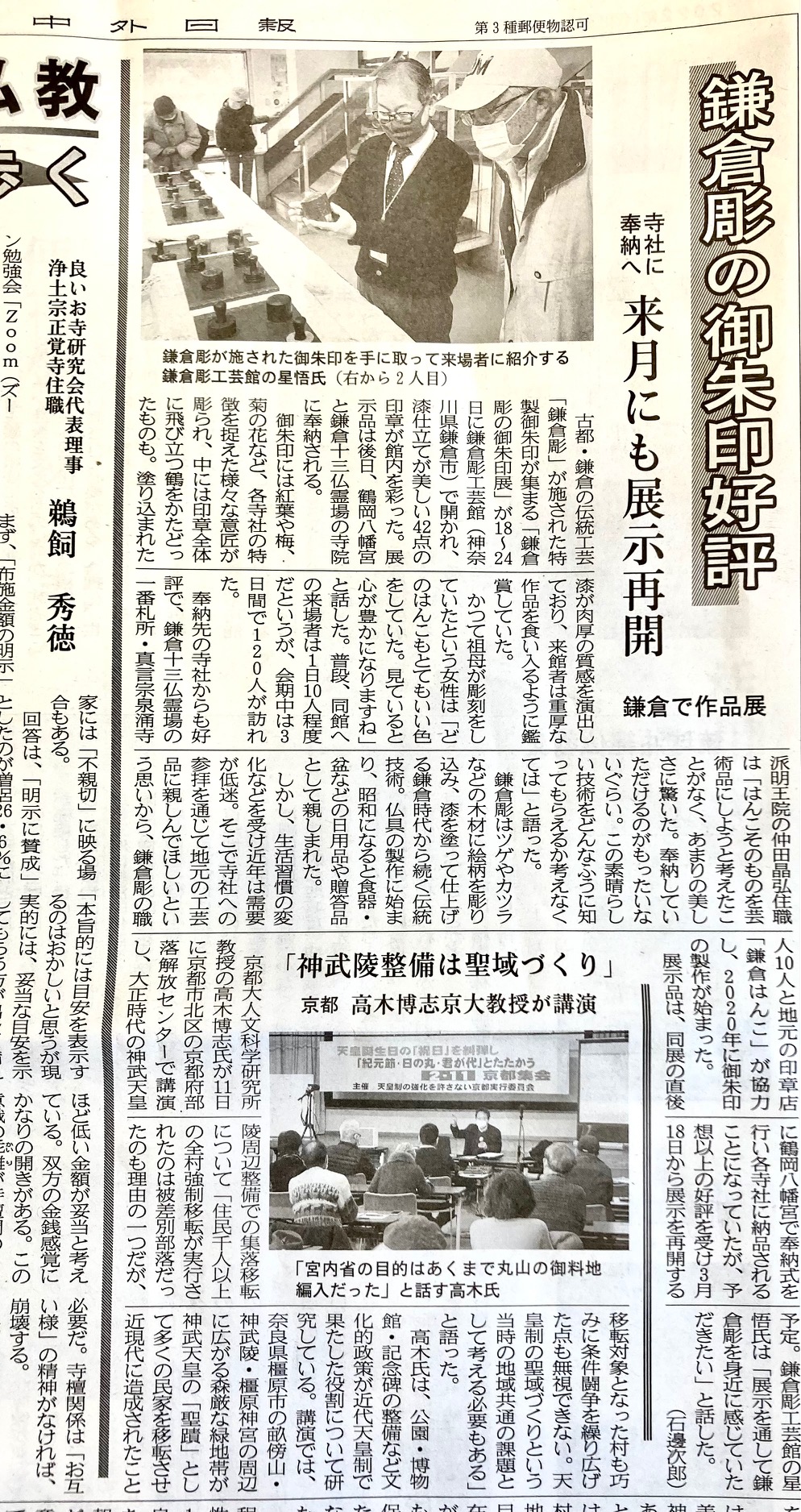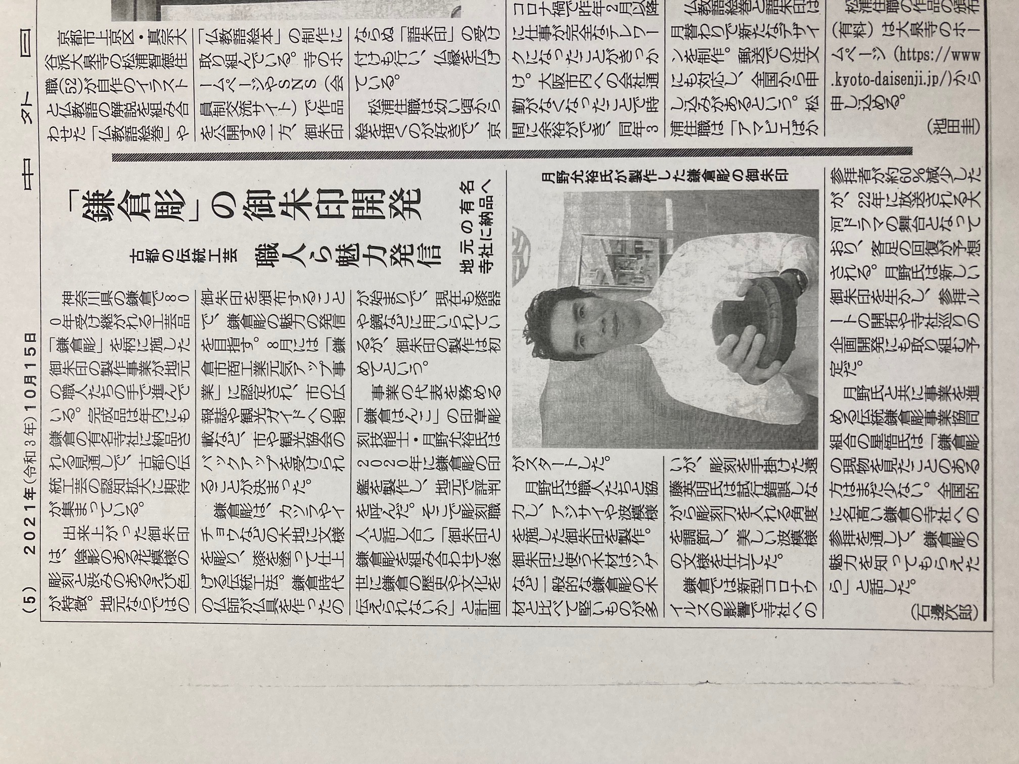 鎌倉朝日新聞の鎌倉彫御朱印の記事について