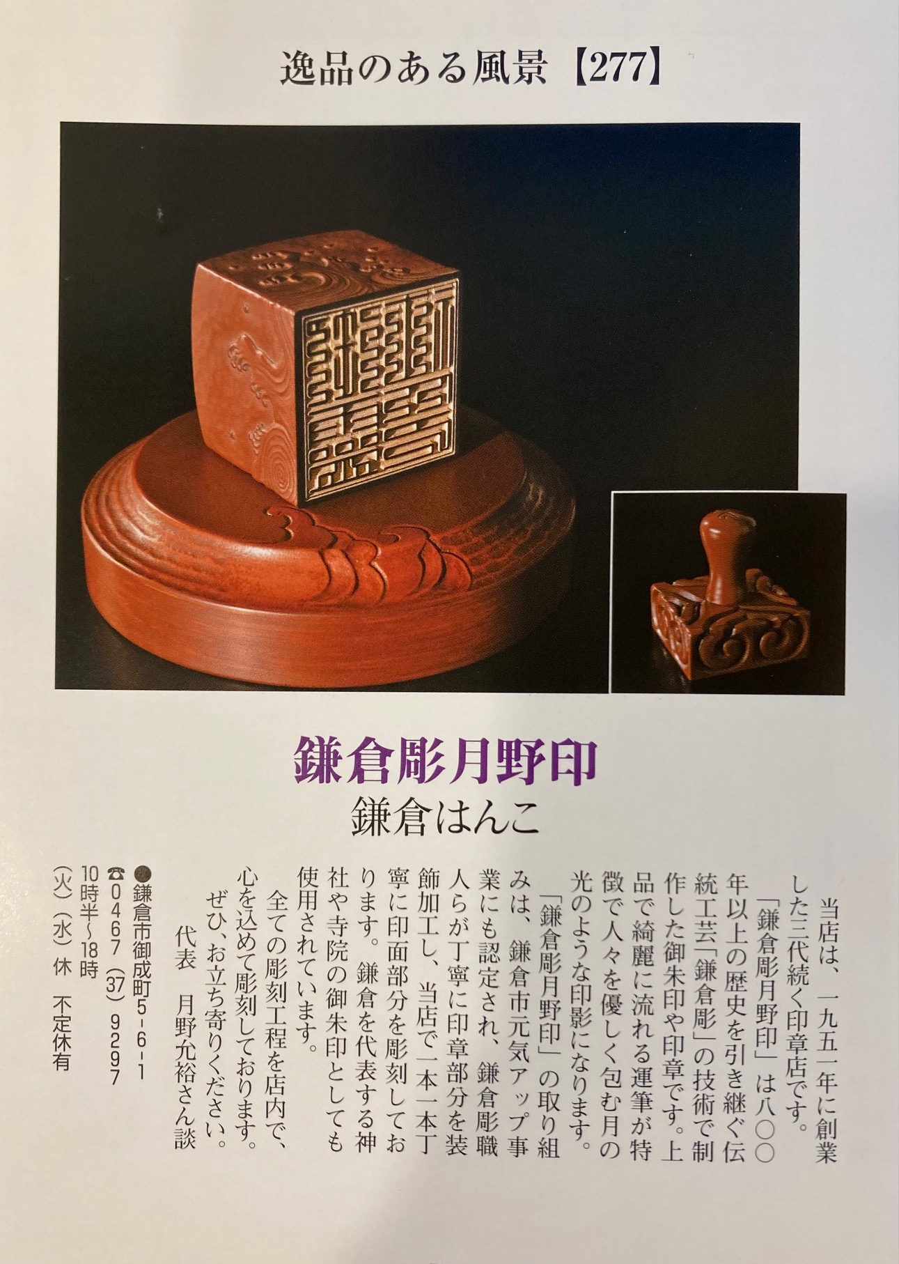 かまくら春秋「逸品のある風景」に特集されました。